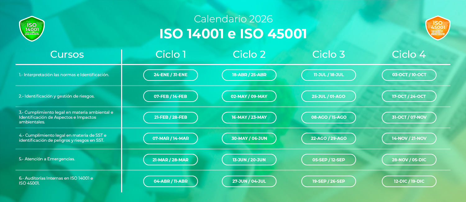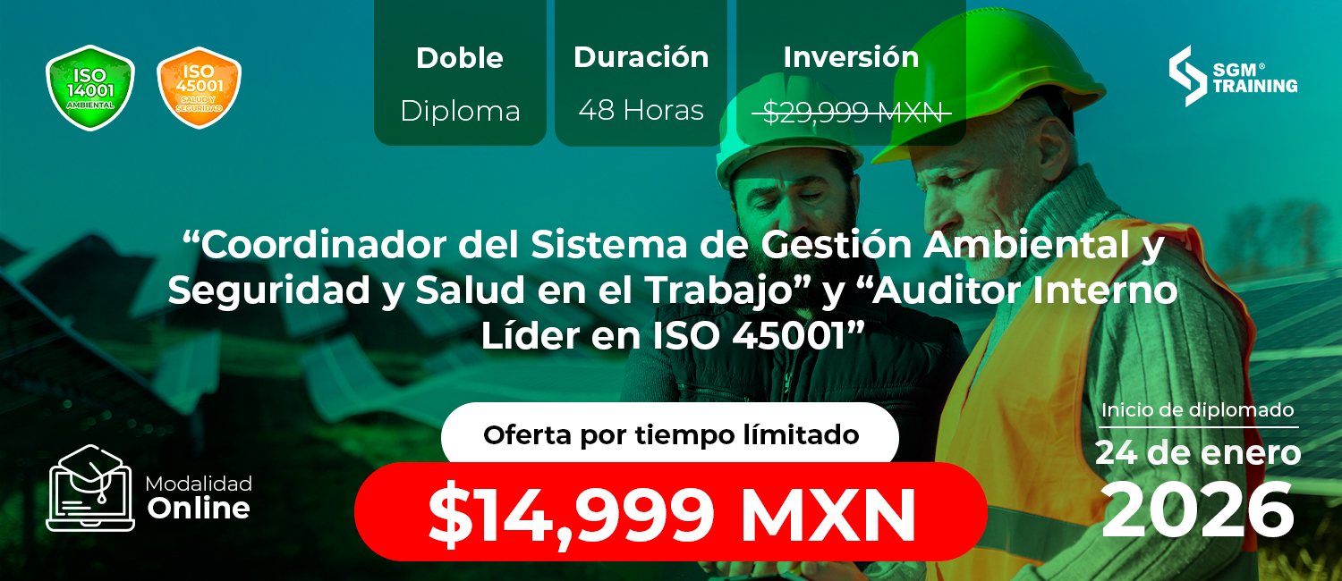 El Diplomado Binorma ISO 14001 e ISO 45001 ha sido diseñado para formar profesionistas capaces de implementar y auditar un Sistema de Gestión Integral, alineado a los estándares internacionales ISO 14001:2015 e ISO 45001:2018.